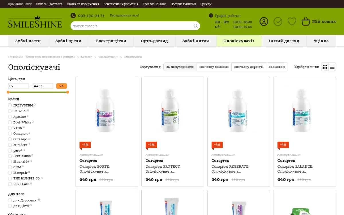 Щоденна гігієна ротової порожнини — це основа здорової усмішки та профілактика багатьох стоматологічних проблем. У цьому допоможе Інтернет-магазин товарів для гігієни ротової порожнини SmileShine, який пропонує широкий вибір якісних засобів для комплексного догляду за зубами та яснами.